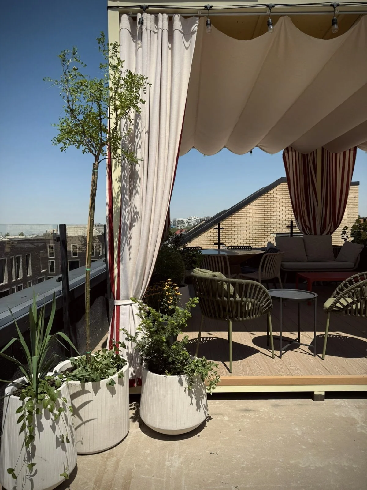 This mini project was entrusted to me during my latest internship in Almaty. The client wanted to turn her empty rooftop into an inviting and functional setting for hosting family and friends on warm summer evenings. The result is exactly that - playful, charming and cozy.